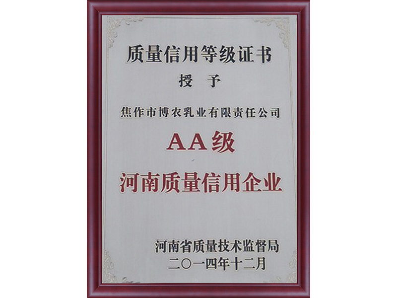 多年來,公司始終秉承“追求健康品質、立足誠信服務”的經營理念,先后榮獲了“中國乳品信譽品牌”、“河南省乳品行業十大品牌”、“河南省農產品加工業示范企業”、“河南省無公害畜產品產地認定企業”、“河南省質量信用AA級企業”、“河南省園林單位”、“河南省綠色企業”“焦作市農業產業化龍頭企業”、“焦作市食品放心企業”、“焦作市誠信食品生產企業”等榮譽稱號。